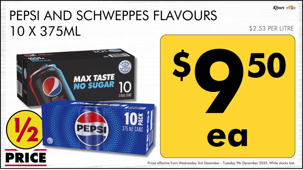 PEPSI AND SCHWEPPES FLAVOURS 10 X 375ML