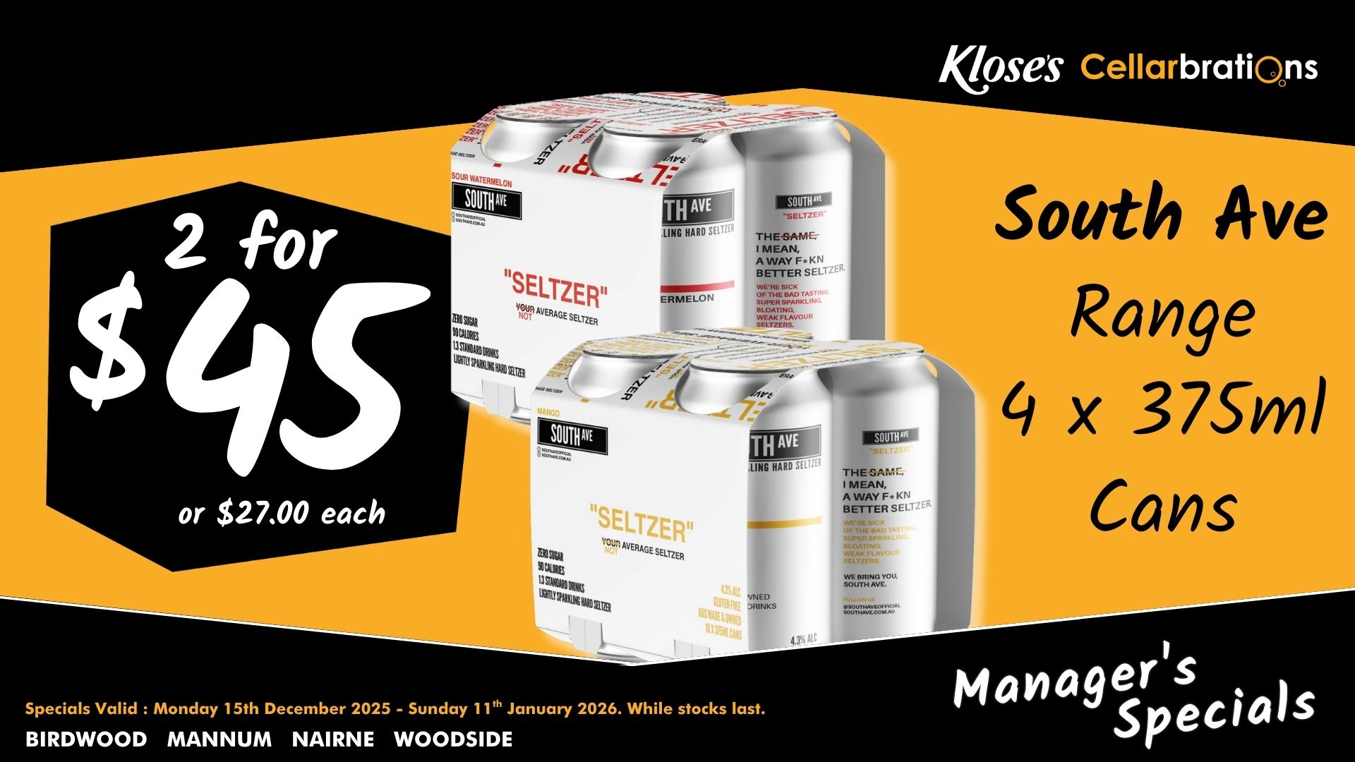 SOUTH AVE 4PKS 375ML CANS SOUTH AVE 4PKS 375ML CANS December 10, 2025 Kylie Heritage December 10, 2025 Categories:Cellarbrations Specials 0 Likes